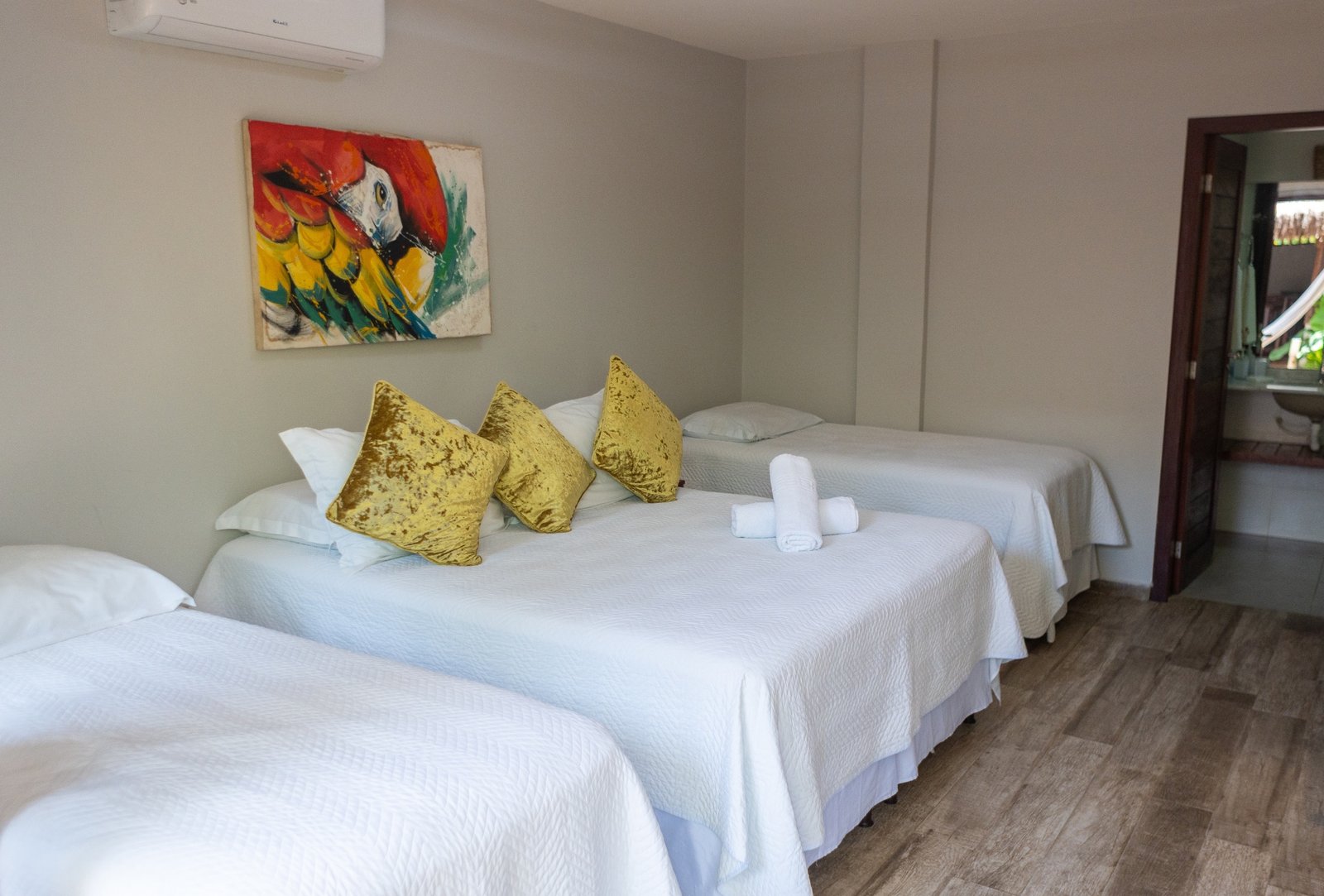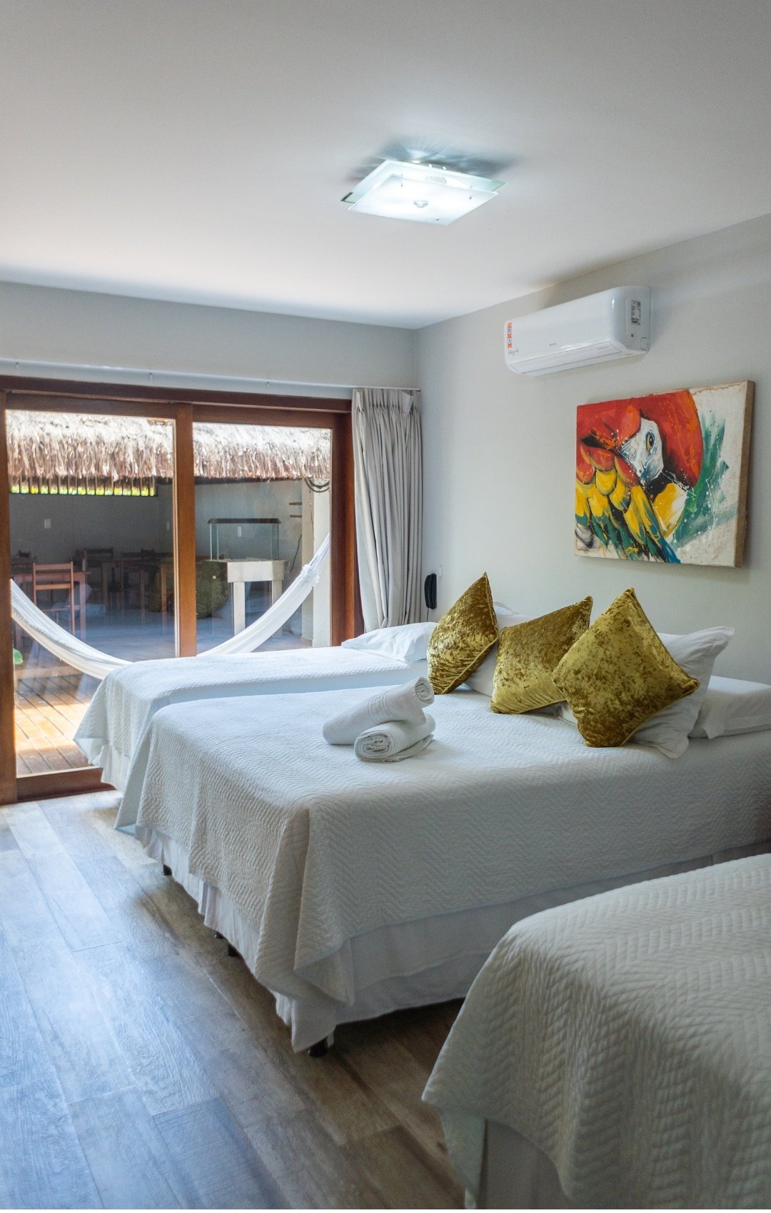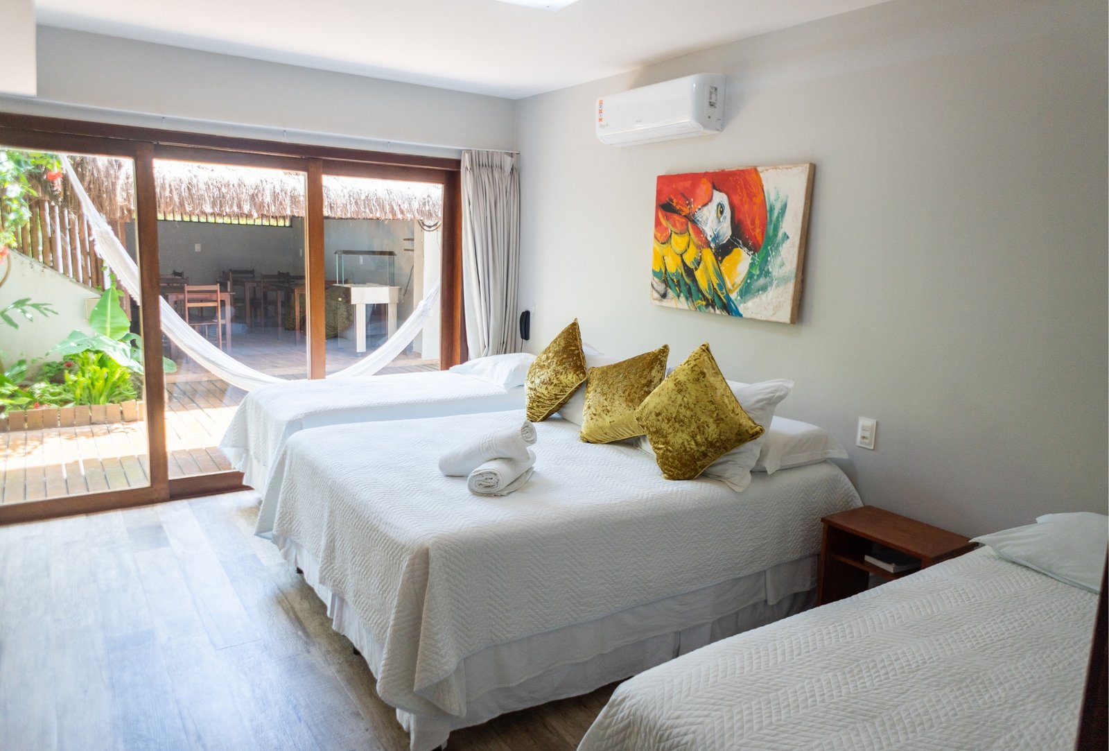 A Suíte Lanikai é perfeita para quem busca conforto e praticidade. Com uma cama de casal e duas de solteiro, o espaço é ideal para famílias ou grupos. Na área externa, uma rede convida ao relaxamento. A suíte também conta com geladeira, micro-ondas, fogão e utensílios para sua comodidade.